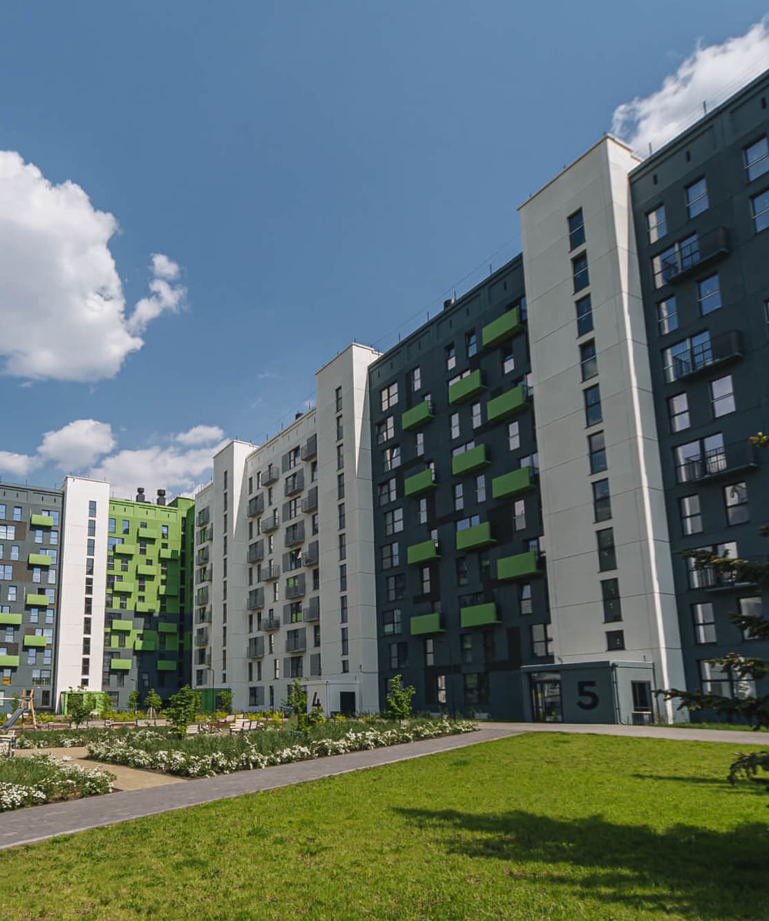 Уютные дворы с ландшафтным дизайном, огороженной территорией и отсутствием автомобилей. Аккуратное озеленение и безбарьерная среда делают дворы по-настоящему комфортными для жизни. Добавьте к этому инфраструктуру, качественные планировки и радующие глаз фасады.