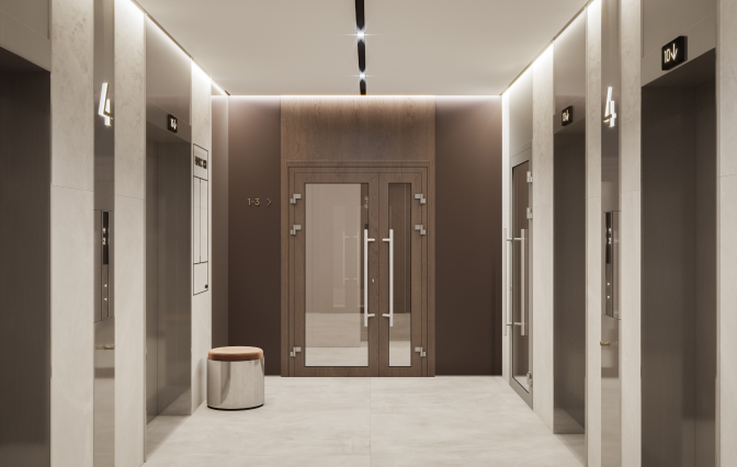 Для вашего удобства на первых этажах предусмотрена уютная мягкая зона, колясочная и помещение для мойки лап животных. Холлы и просторные вестибюли выполнены по индивидуальному авторскому проекту. Панорамное остекление, глянцевые поверхности и изящное освещение создают ощущение блистательного окружения, которое будет встречать вас по дороге домой.